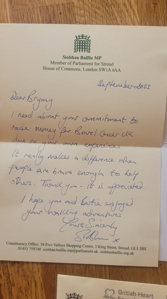 Thank you all for your support, I’m currently awaiting a call to book my CT scan for my Year 3 tests. The bowel cancer marker blood test has said that I’m fine and still clear. So fingers crossed another fundraiser, another time – hopefully with my furry sidekick firmly by my side.